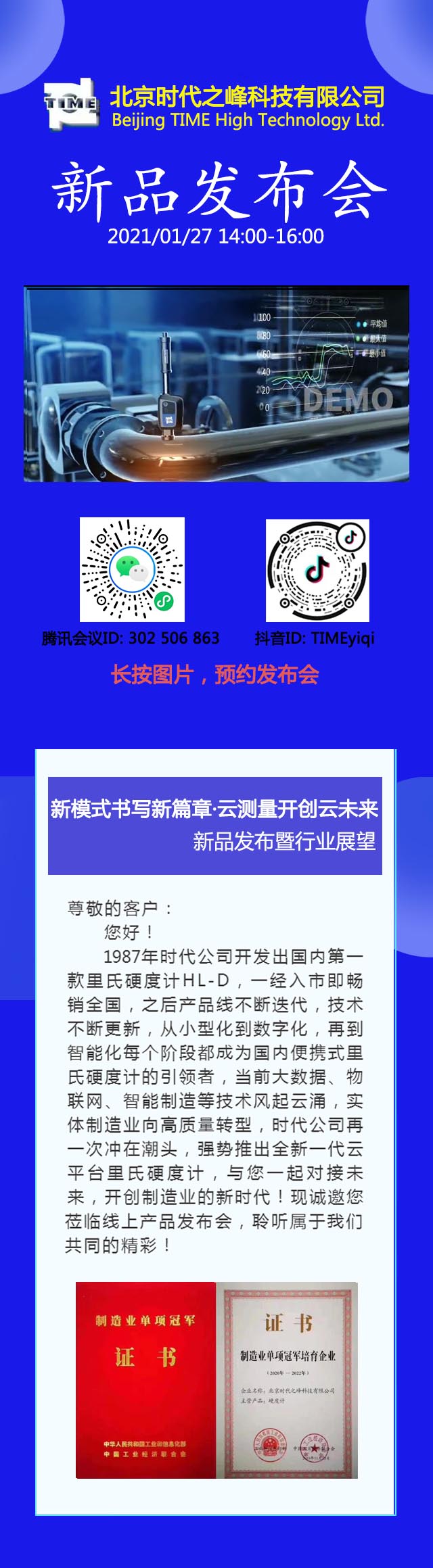 1987年时代公司开发出国内第一款里氏硬度计HL-D,一经入市即畅销全国,之后产品线不断迭代,技术不断更新,从小型化到数字化,再到智能化每个阶段都成为国内便携式里氏硬度计的引领者,当前大数据、物联网、智能制造等技术风起云涌,实体制造业向高质量转型,时代公司再一次冲在潮头,强势推出全新一代云平台里氏硬度计,与您一起对接未来,开创制造业的新时代!现诚邀您莅临线上产品发布会,聆听属于我们共同的精彩!
