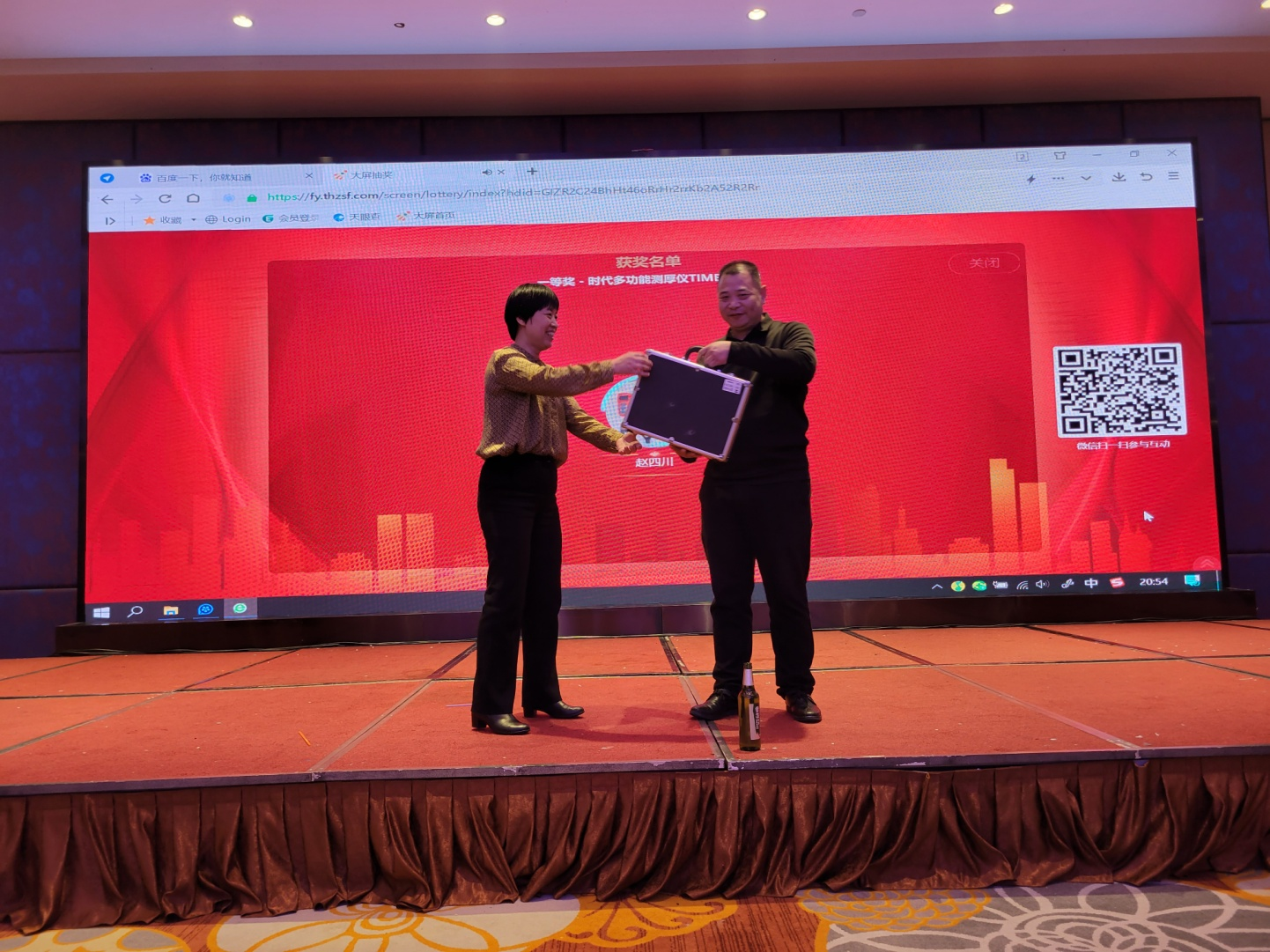 颁奖典礼结束,便迎来了时代之夜晚宴, 渠道销售部总经理周绍辉发表了热情洋溢的祝酒词,大家纷纷举杯,互相祝贺,觥筹交错、酒酣耳热之际,穿插进行了几波抽奖,以祝酒兴!热烈祝贺特等奖获得者王小林、一等奖获得者赵四川、三等奖获得者杨智军,奖品分别是TIME3200、TIME2180B、TIME5300.气氛热烈的晚宴直至午夜时分,大家意犹未尽。