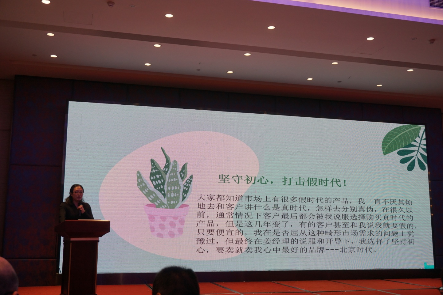 接下来是渠道部总经理周绍辉向大家介绍了大家最为关心的:时代渠道年度工作概述、时代渠道产品结构建设、时代渠道政策发布三大块内容,同样让人深思不已。