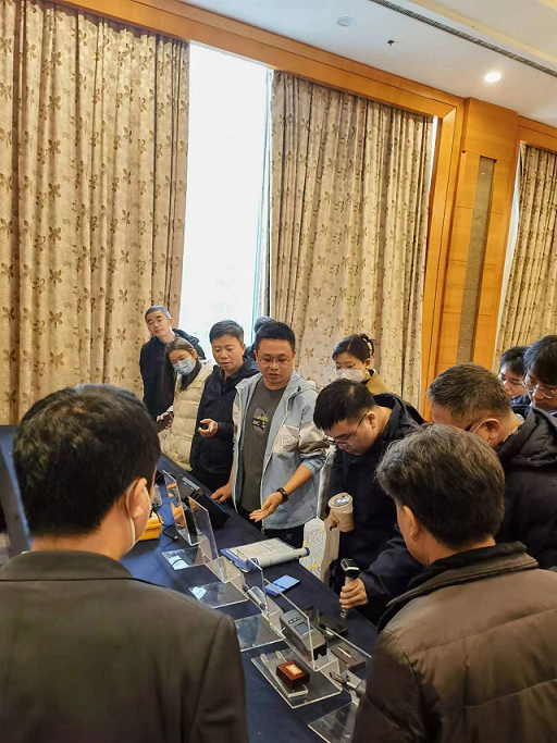 北京时代之峰科技有限公司技术总监何克勤何总给客户介绍了时代硬度计、粗糙度仪、测厚仪、探伤仪等产品的专业知识,分享了时代最新的无线云产品和全自动在线测量系统在不同的行业典型应用。同时,在会前会后,何总和郭祥在现场与客户逐一沟通交流技术问题,并将带过去的样件进行了现场测量分析,对新产品的特点及操作做了详细讲解。