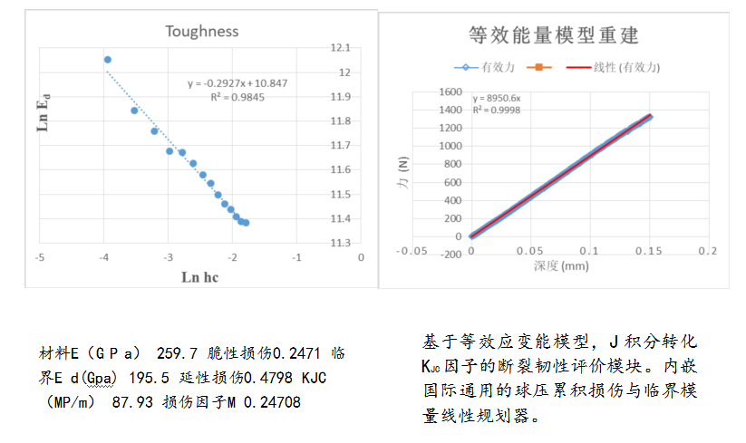 断裂韧性基于临界压痕能量模型则是基于临界压痕能量模型,即当压痕深度到达临界压痕深度时曲线与XY轴所截的面积通过模拟计算后得出断裂韧性。