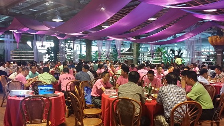 在活动当天,首先请客户参观时代的展台,让新老客户,零距离的了解公司的新产品,感受时代公司创新和时尚的面貌,了解新旧产品的差异,同时,展台同仁非常认真的对待每一个客户,耐心的给大家现场讲解和演示。一天的展台参观让每一位客户对时代公司有了一个全新的认识,很多客户给予的评价都是,今年时代的展台真漂亮,“引领便携式仪器新风尚、成为检测仪器大全企业、中国第一、世界先进“太有气势了。还有些客户说,时代的产品变化真的挺大,以前HLN-11A为代表的仪器,以灰蓝色调为主,现在时代展台是亮色,时代的产品也很靓,看样子是追着时尚产品走。看过时代展台,所有参加时代之夜的用户及代理商朋友聚集在展台,下午四点搭乘大巴统一前往蟹岛度假村。