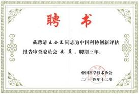 中国科协同时成立了评估报告审查委员会,由25名专家组成,王总委任委员。此委员会主要负责对评估报告的讨论,政策建议合理性等进行审查及研究。