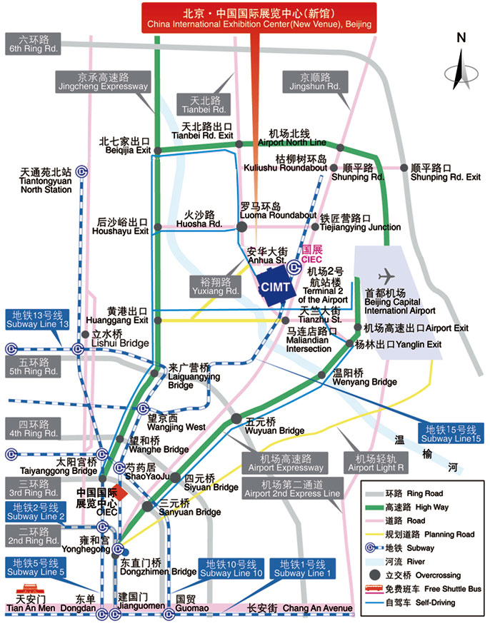 2、经机场高速路,从“杨林”出口出,走天竺大道可到新国展;