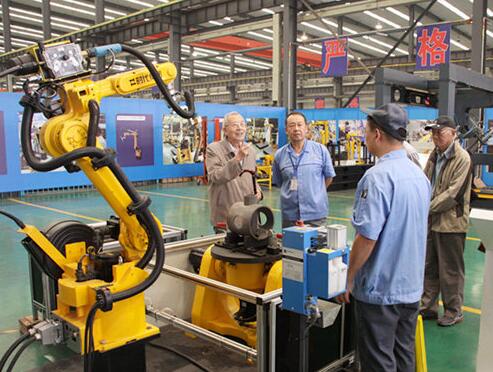 9 月 27 日,原机械工业部副部长、总工程师沈烈初, 科技司周司长,中机质协部学俊副会长在唐荣副总裁陪同下,赴济南考察时代试金工业园、时代新纪元焊接工业园,刘维平董事长、鲍云杰总裁分别接待并介绍了机器人、试验机、智能化焊接工厂及两个产业发展的情况,共同商讨产业发展设计。