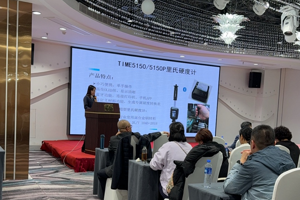 茶歇和参观新产品后,硬度事业部总经理陈天斌带来了《从宏观到微观,从表象到机理——时代硬度及仪器化压痕技术在材料研发和服役性能评价中的应用》的专业报告,陈总首先讲解了硬度计原理、分类、发展现状及时代台式硬度计的新产品,着重讲解了洛氏硬度计TIME6166\6168及TIME6168A以及新开发的维氏硬度计。接着就仪器化压痕技术的应用原理和实践案例展开了深入浅出的讲解。