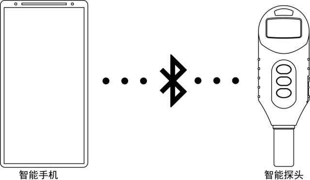 产品由1台智能手机+1支智能探头组成,两者通过蓝牙进行无线通信。