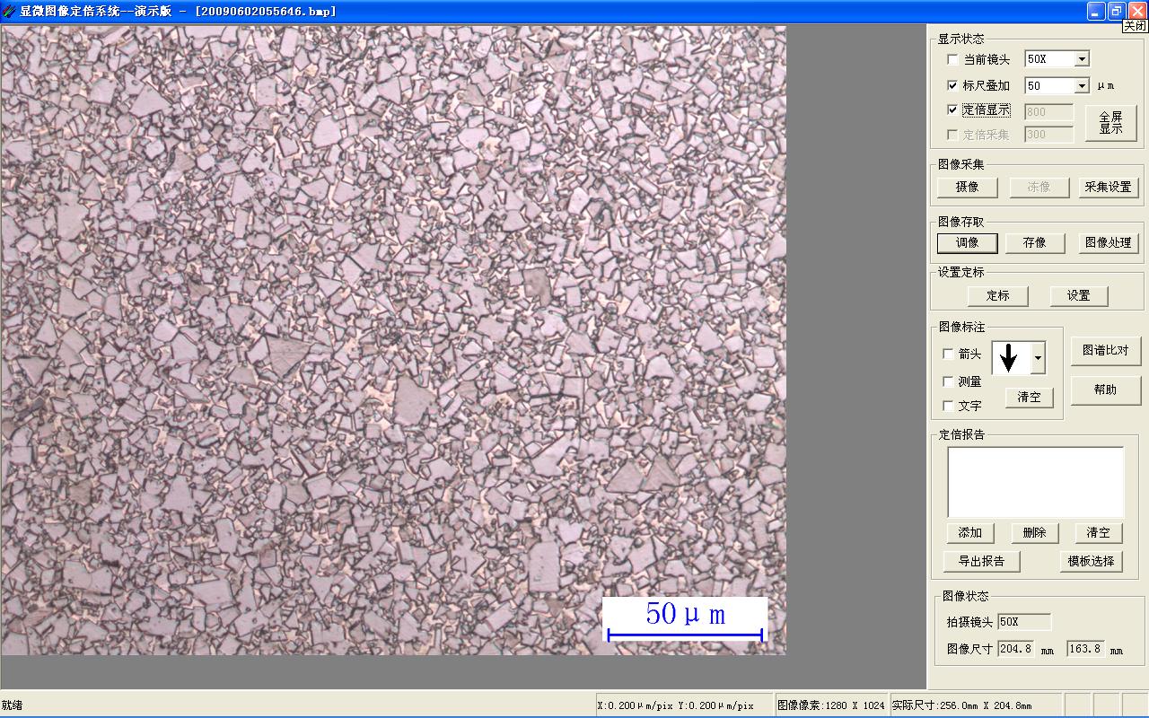 在金相图像系统中,常常要进行图像定倍。但传统的定倍软件,只有“定倍打印”的单一功能,且打印出的图片清晰度差,不能满足金相图像的尤其是高档金相图像用户对打印分辨率的要求。