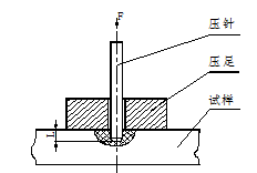 将一定形状的钢制压针﹐在规定的试验力作用下﹐压入试样表面﹐当压足表面与试样表面紧密贴合时﹐压针端面相对压足平面有一定的伸出长度L﹐长度L越大﹐表示邵氏硬度越低﹐反之越高,测量示意图见下图。